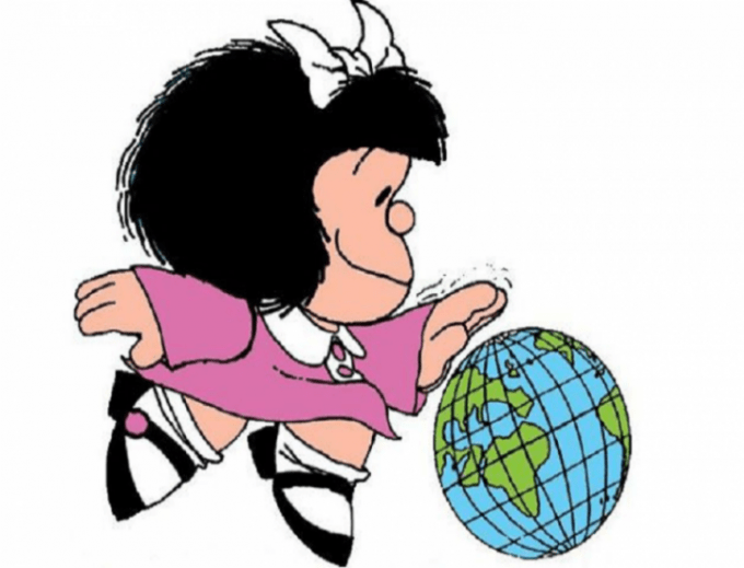 Be a character like Mafalda, I think is appropriate, in a world as that we are. Quino genius, created with a simple thought an irreverent character, who makes subtle satire…”a little girl who observe the world of adults”.