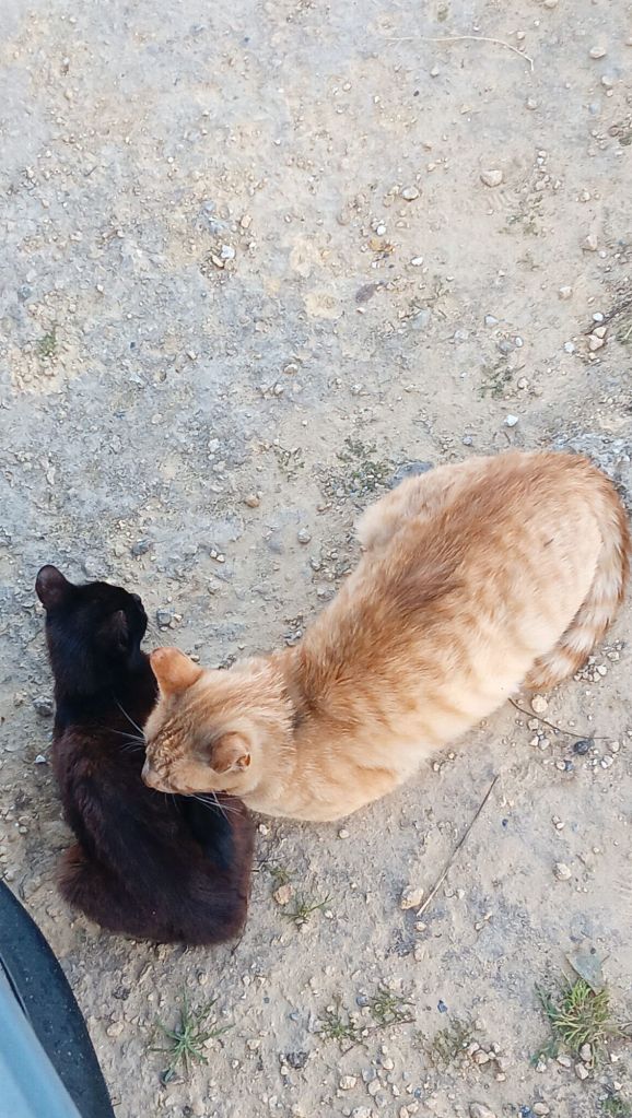 This night, I opened the door of motorhome and the two cats of yesterday, were there, again, in front of me, < meow, meow,,we’re hungry!>.